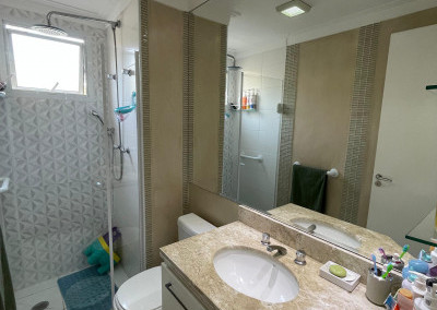 Possui área de lazer completa, com 02 piscinas climatizadas, churrasqueiras, academia, deck de descanso, sauna, salões para festas e quadra poliesportiva