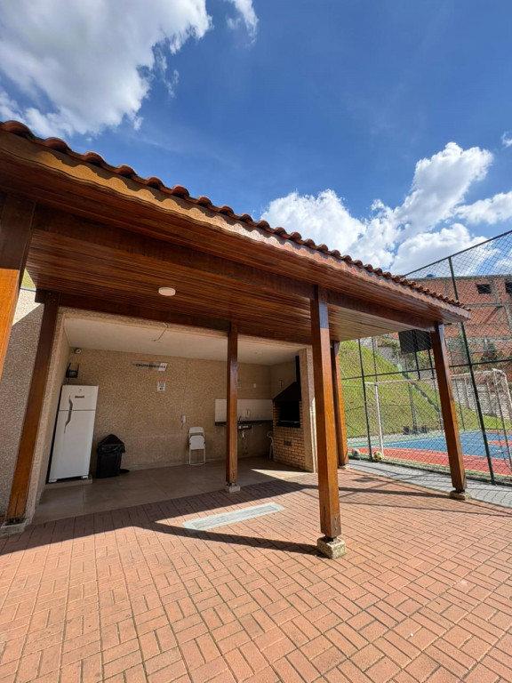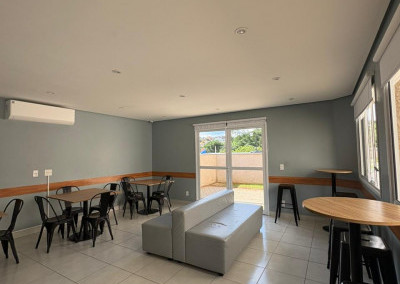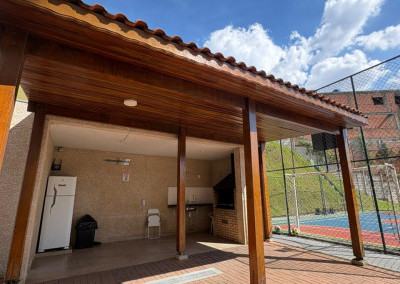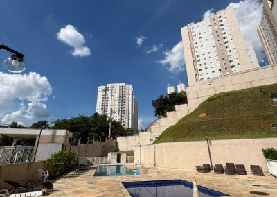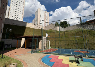 O condomínio possui lazer para todas as idades, tendo piscina, churrasqueira e playgrond, além da quadra poliesportiva