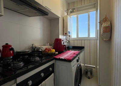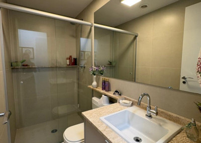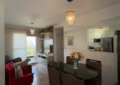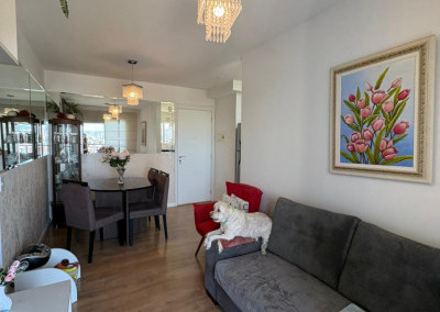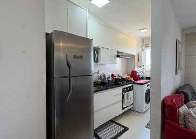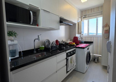 Com 55m2 é distribuído em 02 dormitórios, sendo um deles suíte, cozinha planejada e sala com varanda vista livre
